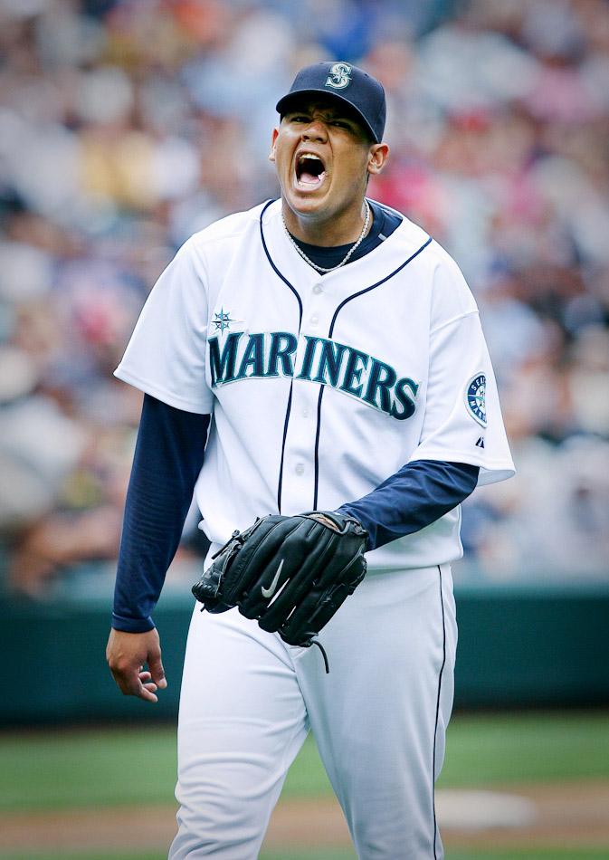 2010 Nominee Seattle Mariners pitcher Felix Hernandez reacts after the final out in the inning against the Boston Red Sox at Safeco Field. (Dan DeLong/Seattle Post-Intelligencer)