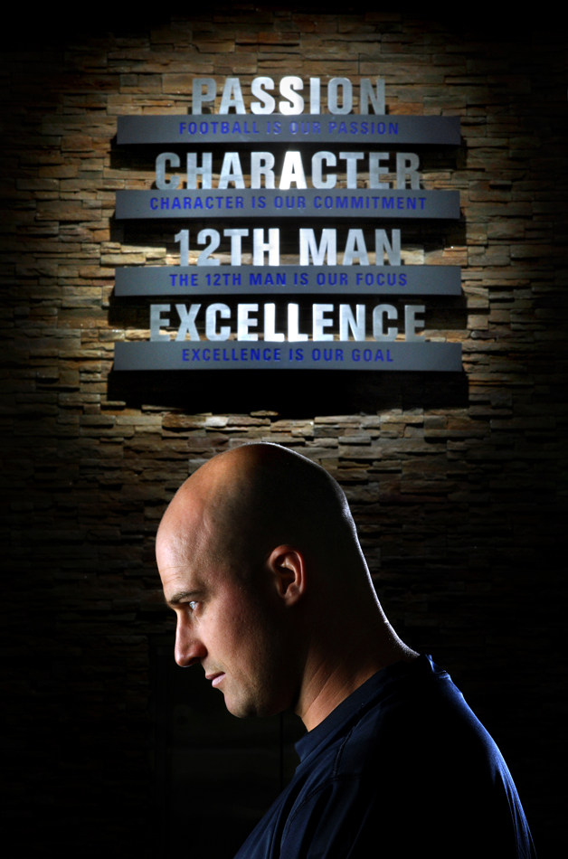 2003 P-I Sports Star of the Year Seahawks quarterback Matt Hasselbeck is shown with the team mission statement at the Virginia Mason Athletics Center. (Andy Rogers/Seattle Post-Intelligencer)