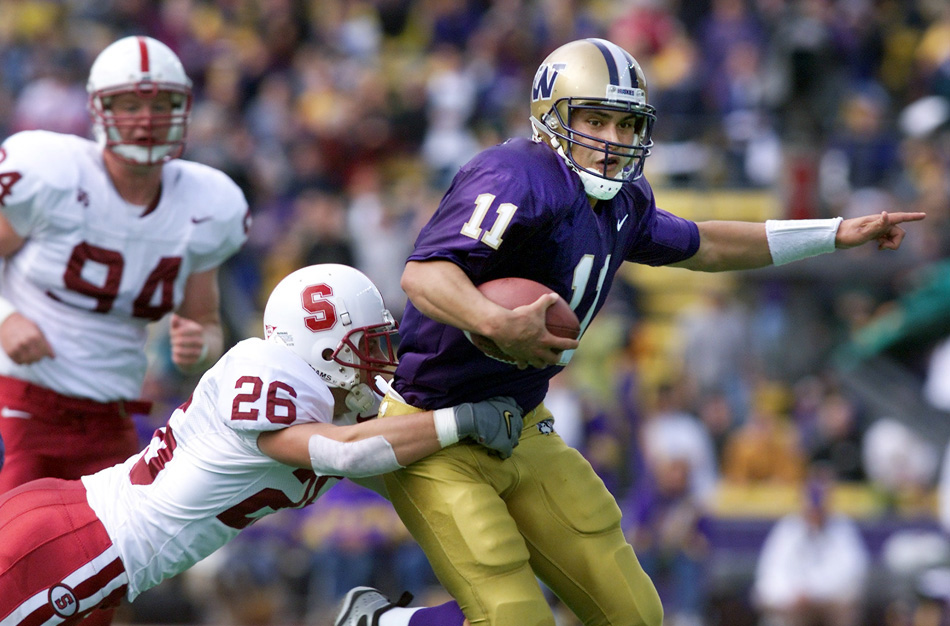 1999 P-I SSY Marques Tuiasosopo rushing for a first down during the second quarter of UW's victory over Stanford. (Dan DeLong/Seattle Post-Intelligencer)
