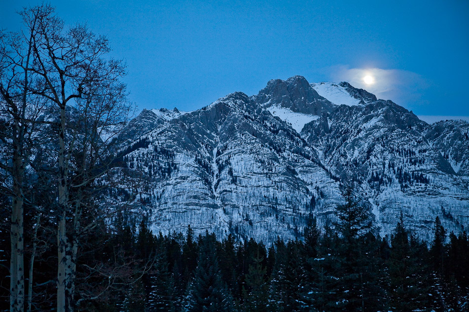 The moon rising over the mountains as we make our way to Yoho National Park from Calgary. (Photo by Andy Rogers/Red Box Pictures)