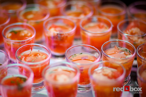 Shots of ceviche served by A Grand Affaire Catering during "RE-New", a Winter Open House and Complimentary Tasting, at Georgetown Studios in Seattle. (Photo by Red Box Pictures)