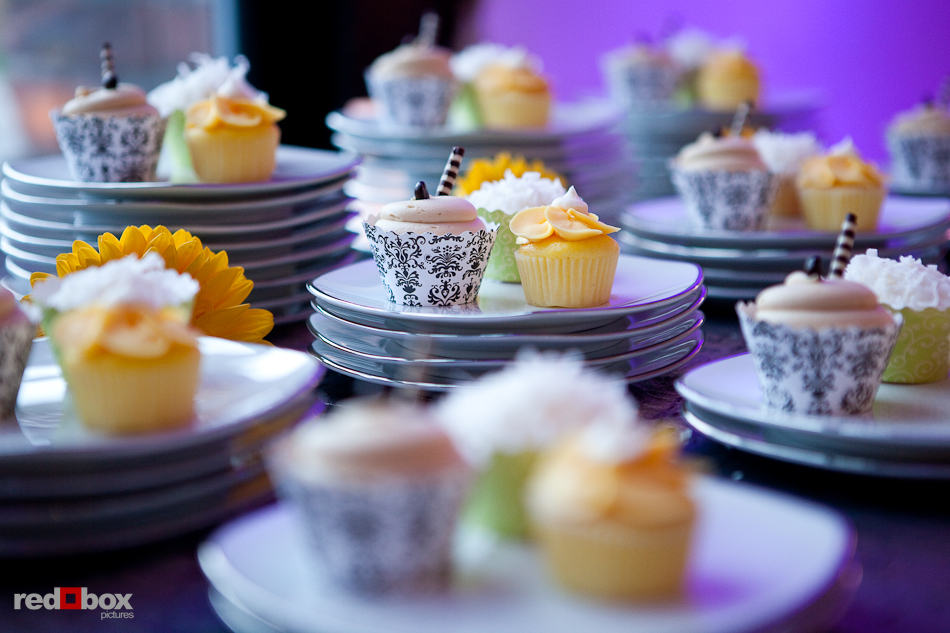 Cupcakes by Sugar Rush Baking Co. and outfitted with sleeves by Bella Cupcake Couture at the A Grand Affaire Catering "RE-New" event, a Winter Open House and Complimentary Tasting, at Georgetown Studios in Seattle. (Photo by Red Box Pictures)