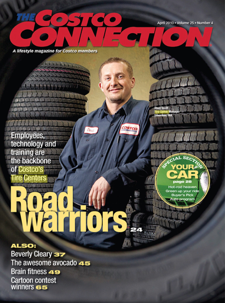 Like a lot of people, I’m a big Costco fan, so it was a real treat to photograph the cover of April’s Costco Connection, the company’s lifestyle magazine. The shoot was loads of fun, largely because Doug Scott and his crew were such gracious hosts and easy-going, patient subjects. A portrait of Scott, the manager of the store’s tire center in Silverdale, is featured on the cover and images of the crew at work appear inside with the article. – Dan DeLong