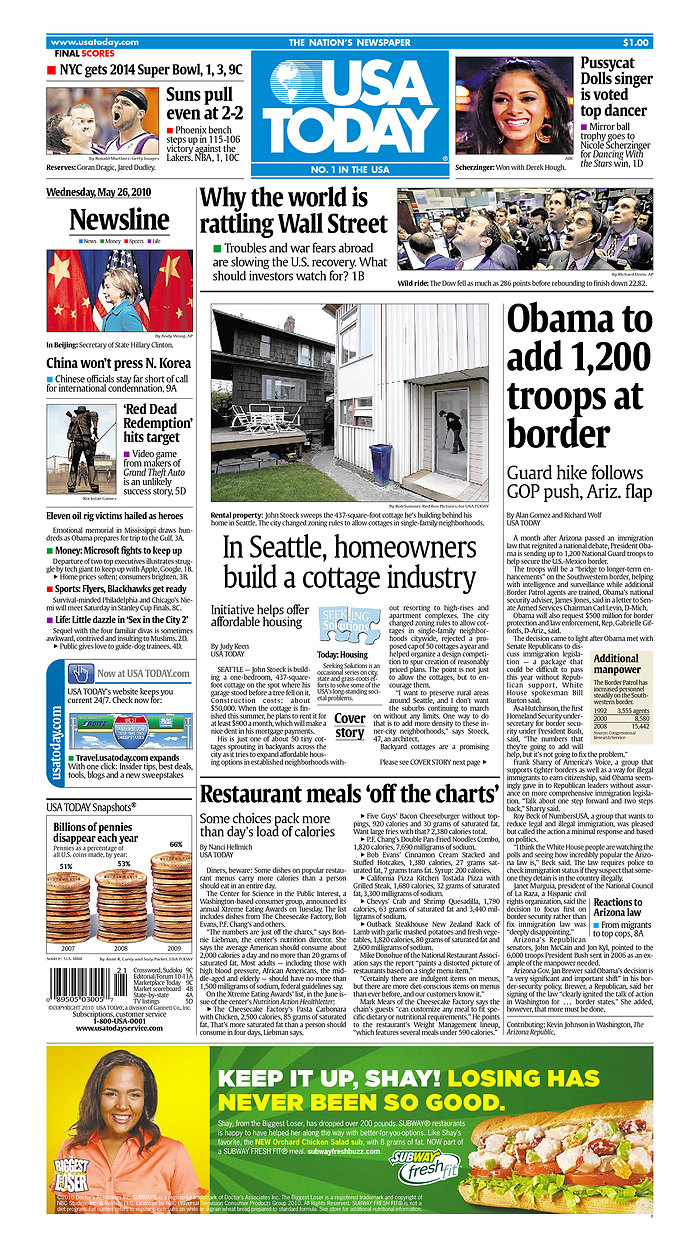I was happy to see that a story I photographed for USA Today made today’s front page. I don’t shoot too many editorial assignments anymore, so I certainly enjoyed going out and meeting the subjects in this story about Seattle’s backyard cottages. USA Today editors made a nice video featuring some of the photos. – Rob Sumner