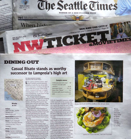 James Beard Award-winning Seattle chef Scott Carsberg recently closed his long-time Belltown fine-dining restaurant Lampreia after 18 years, to open the more casual small-plates restaurant Bisato. Chef Carsberg redesigned the space and re-opened about two months ago. Seattle Times restaurant critic Providence Cicero wrote a glowing review in today’s Dining Out section in the NW Ticket section of the Times. The Times used two of my photographs in the review. Here are some of the images and dishes. Enjoy. | Scott