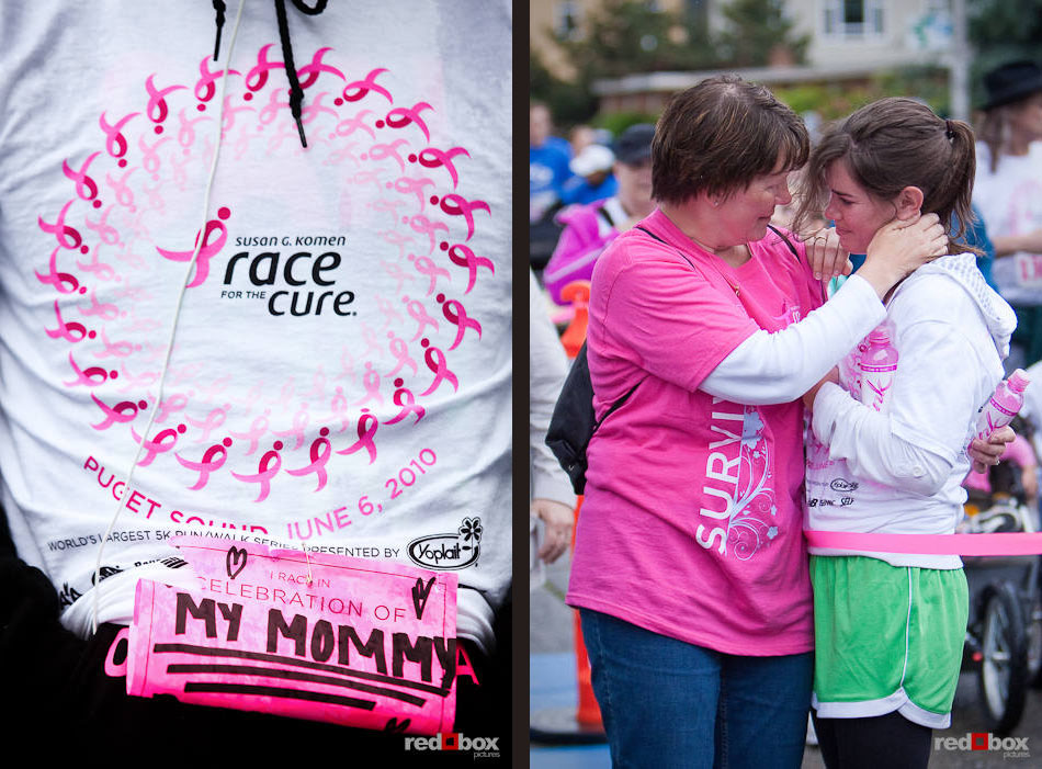 Red Box Pictures had the privilege of documenting the 2010 Komen Puget Sound Race for the Cure on June 6. It was dreary and pouring when we arrived, but we were warmed by the amazing spirit of everyone involved, from volunteers and spectators to organizers and participants. Mostly, we were inspired by all breast cancer survivors, clad in hot pink tee shirts, who are the engine that make the whole event run. Enjoy some highlights from our shoot below, and visit our web site if you’d like to browse a larger gallery of photos of the 2010 Susan G. Komen Race for the Cure in Seattle.