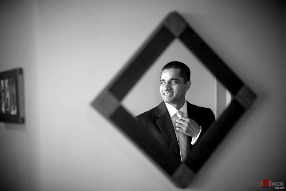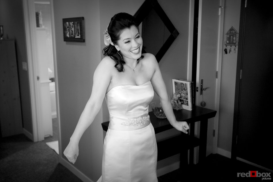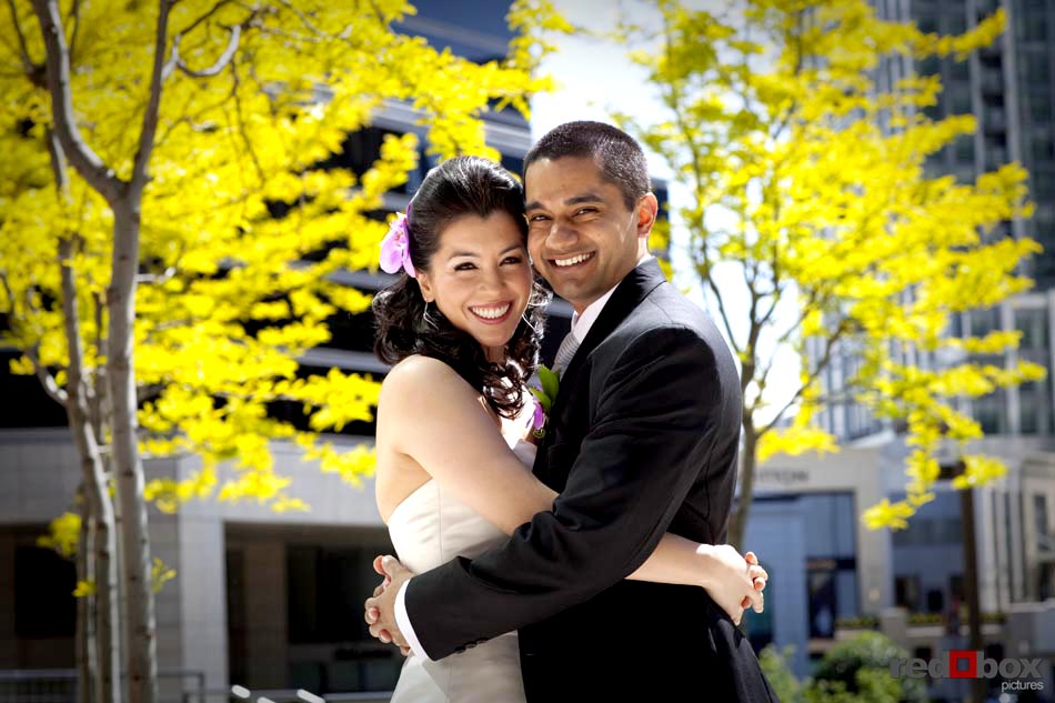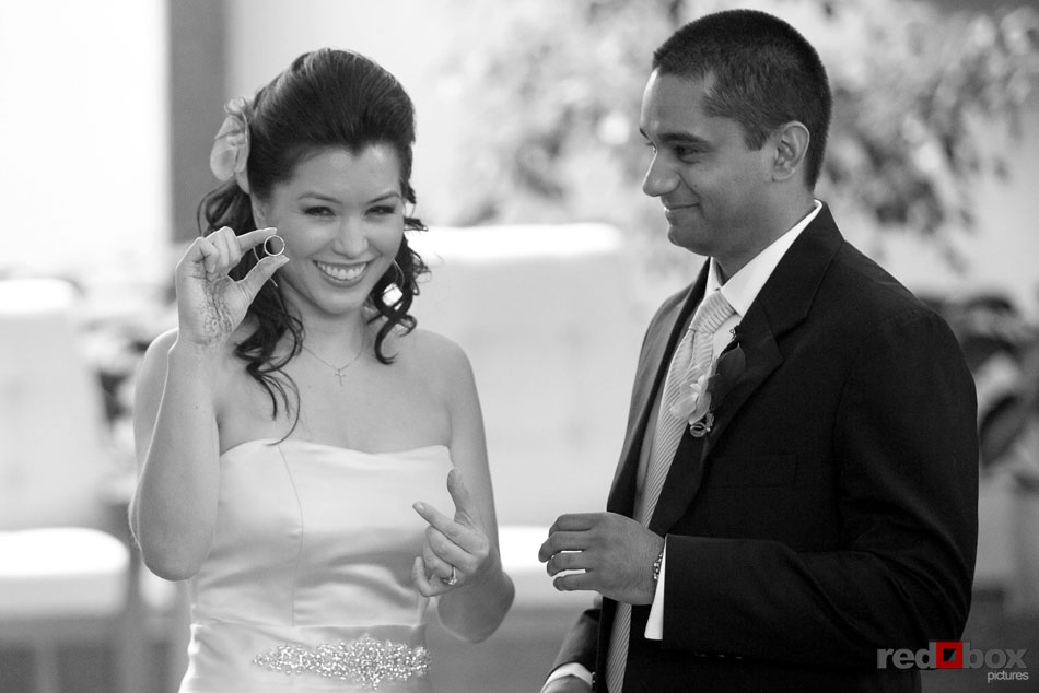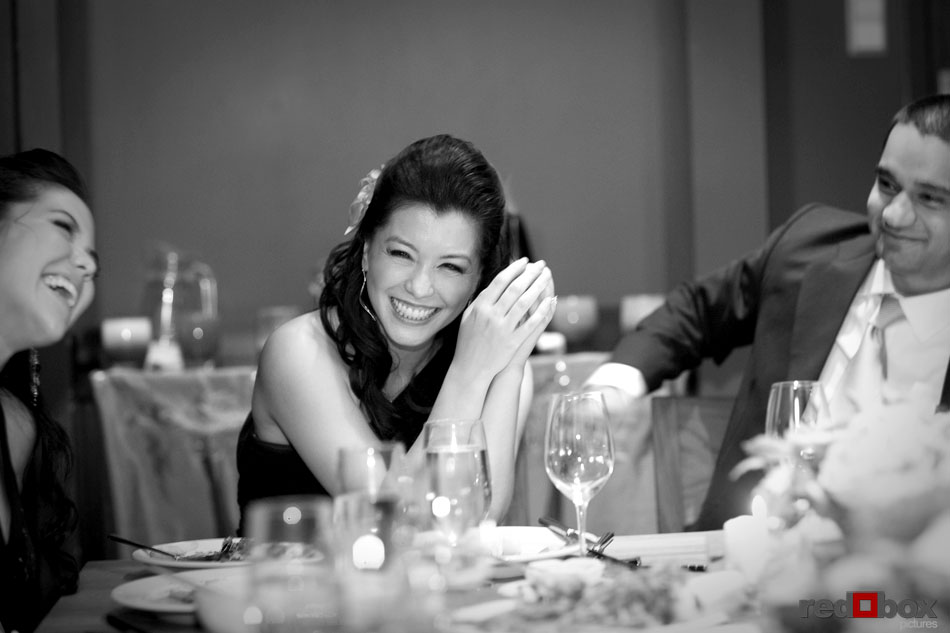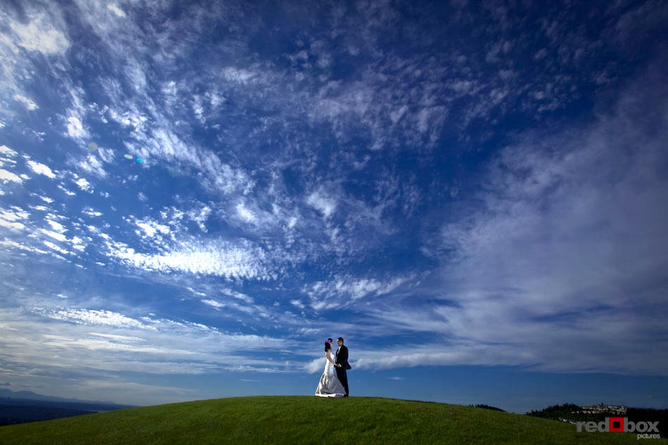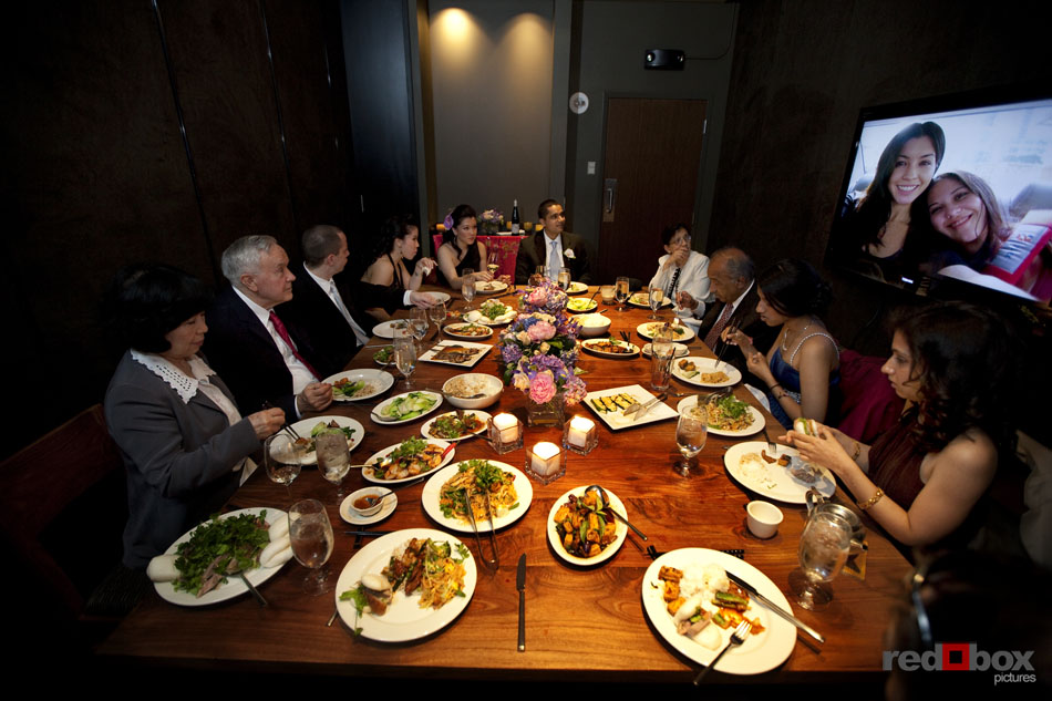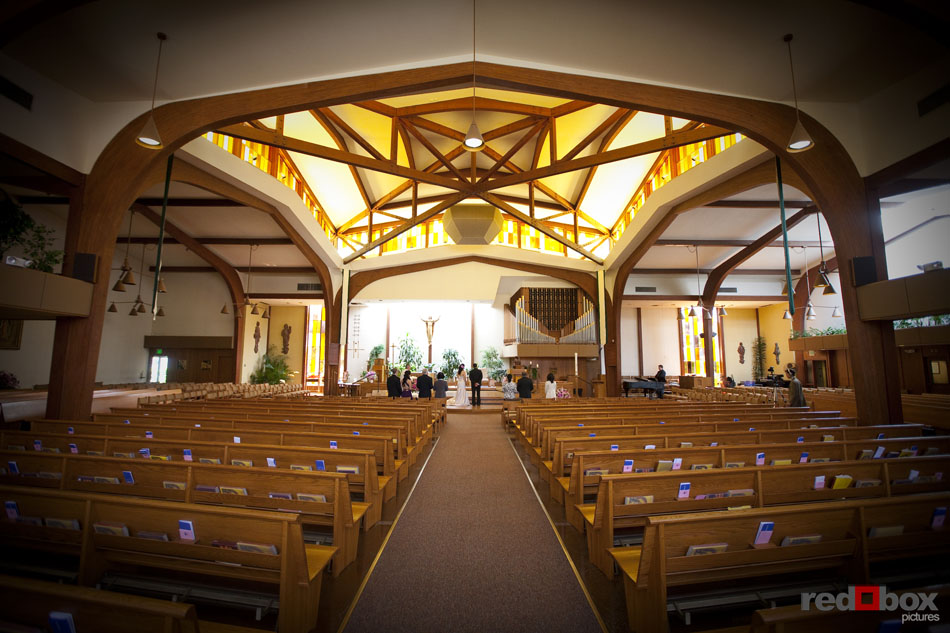 Johanna & Neel had just eight guests at their intimate wedding ceremony recently at St. Louise Catholic Church in Bellevue. The couple had already said their vows in front of numerous friends and extended family in Orlando the previous week, so this was something very special for only the two of them. After the ceremony, they made a stop at The Golf Club at Newcastle for some stunning views and portraits, then it was off to Wild Ginger in Bellevue to cap off the evening with an amazing meal. The intimate affair was a nice change of pace from most weddings, as the relaxed couple enjoyed the company of just their closest family. Even their two dogs, Sam and Maynard, couldn’t land invitations to the ceremony, but were still made to feel like the most loved pets in the Northwest on this day. | Scott Eklund