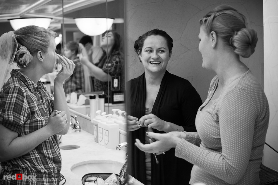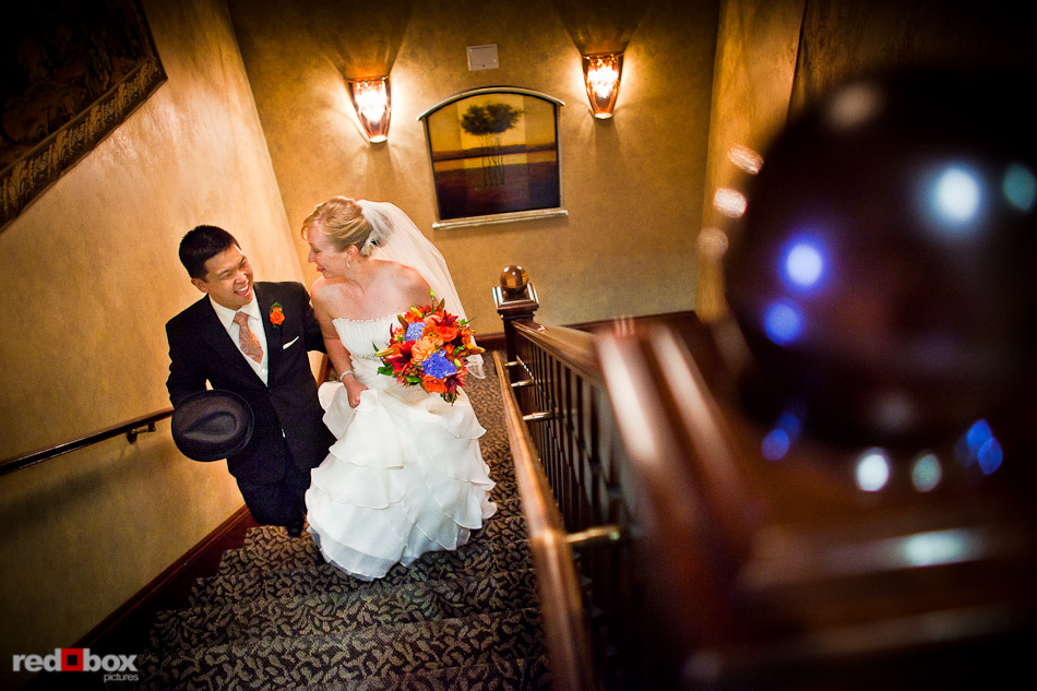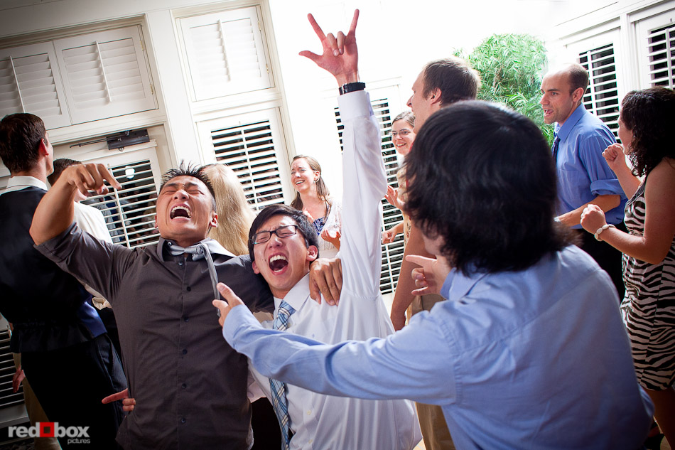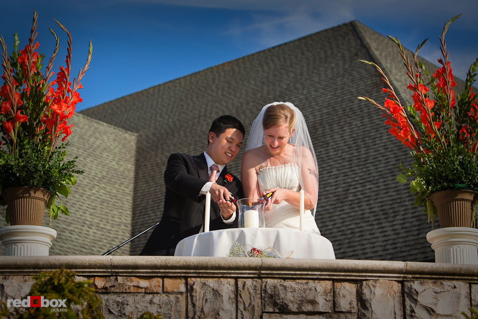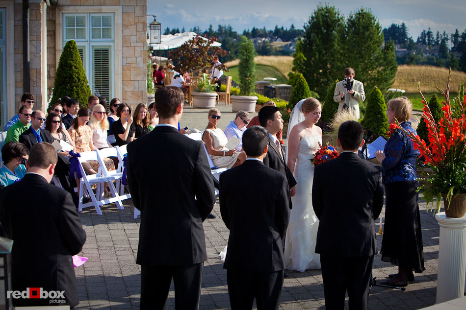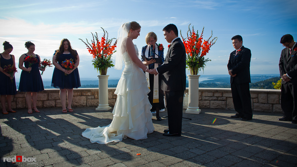 Jenny and Eugene officially joined their lives together with two weddings in one afternoon at The Golf Club at Newcastle. The first was a traditional western ceremony held on the patio with views of Seattle and Bellevue. The second was a Korean tea ceremony that culminated with Eugene carrying his bride around the room on his back to the delight of his guests and family. I knew from doing their Seattle Center engagement photos that the couple was kind and fun-loving. Rob Sumner and I expected the same from their ceremony and weren’t disappointed by their jovial, stress-free day spent with terrific friends. | Andy Rogers