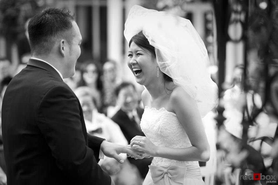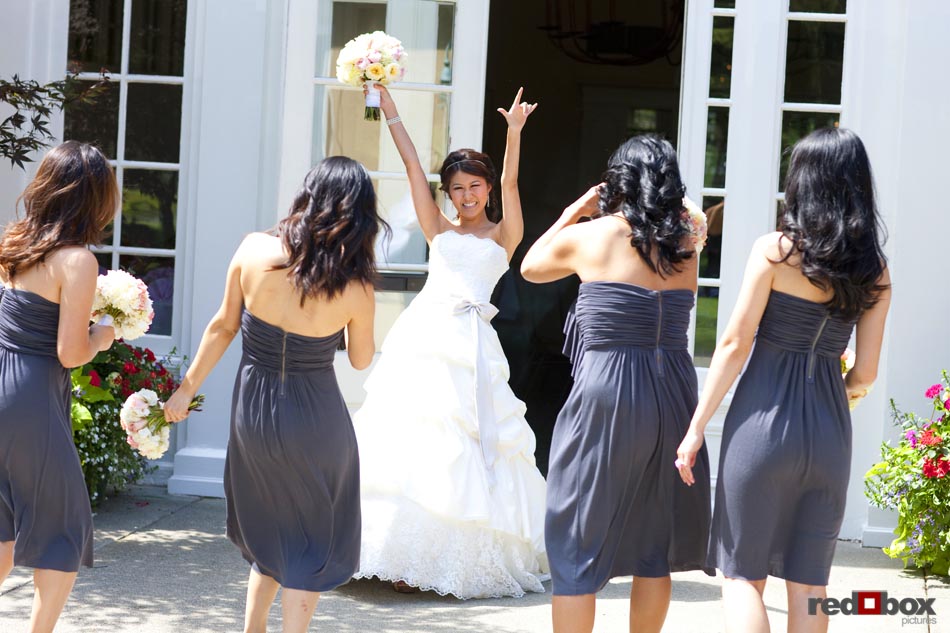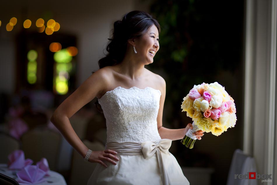 Christy & Won got one of the beautiful days of the summer as they held their wedding at a wonderful venue, the Inglewood Golf Club in Kenmore. Christy was stunning in her wedding dress from Cynderellies Closet in Edmonds. Laurel Mitchell of Laurel’s Floral Decor designed an eye-catching floral arrangement for the arbor over the alter as well as stunning bouquets for the bride and her bridesmaids. DJ Gary Mason had a great feel for his audience as the dance floor was hopping all night long. A fun couple and a fun day! Scott Eklund