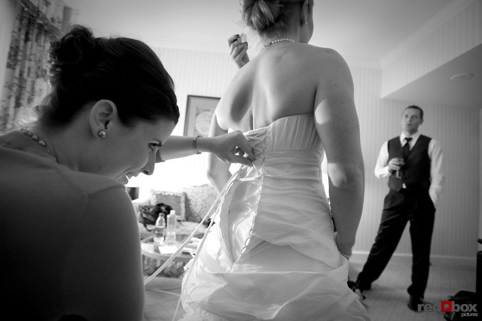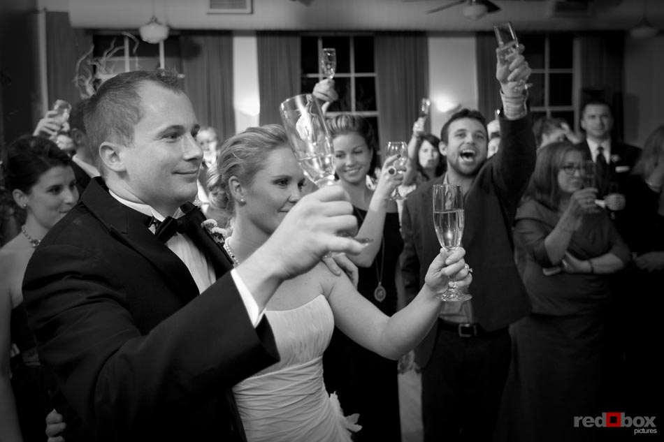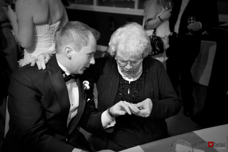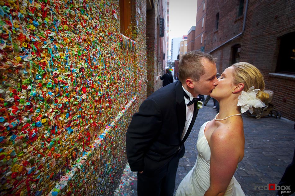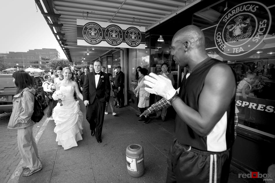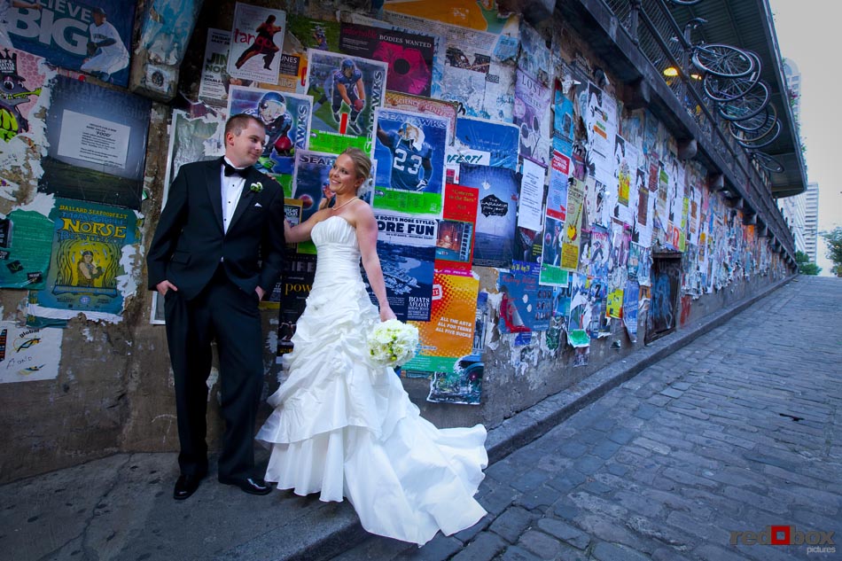 Arielle and Garth had a great wedding day that started out at the Fairmont Olympic Hotel in Seattle and finished up at Dick’s Drive-In on Capitol Hill. The couple saw each other for the first time outside the Georgian Room at the Fairmont, before taking a limo ride with their wedding party to the Pike Place Market. A nice walk through the market took us to the wedding destination, the Top of the Market. Jessica Obrist of Jo Jo Stiletto Events kept everything running smoothly and on-time at this intimate venue where the food and atmosphere were terrific. Great action on the dance floor was a credit to the wonderful DJs from Gen X Pro and also to the lively friends and family of Arielle & Garth! What wedding wouldn’t be complete without a stop at Dick’s Drive-In on Capitol Hill for burgers, fries and a shake. What a fun night! Scott Eklund