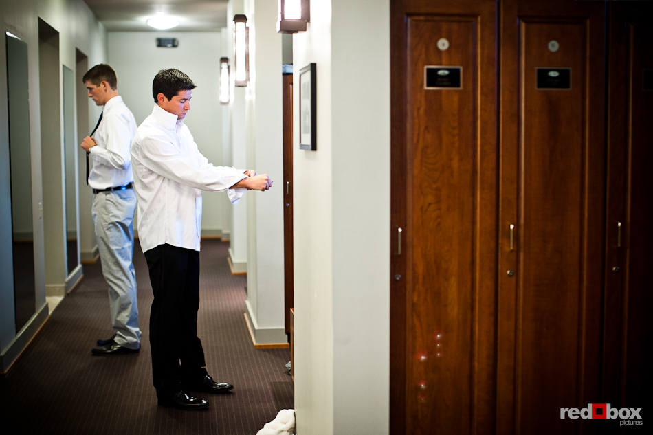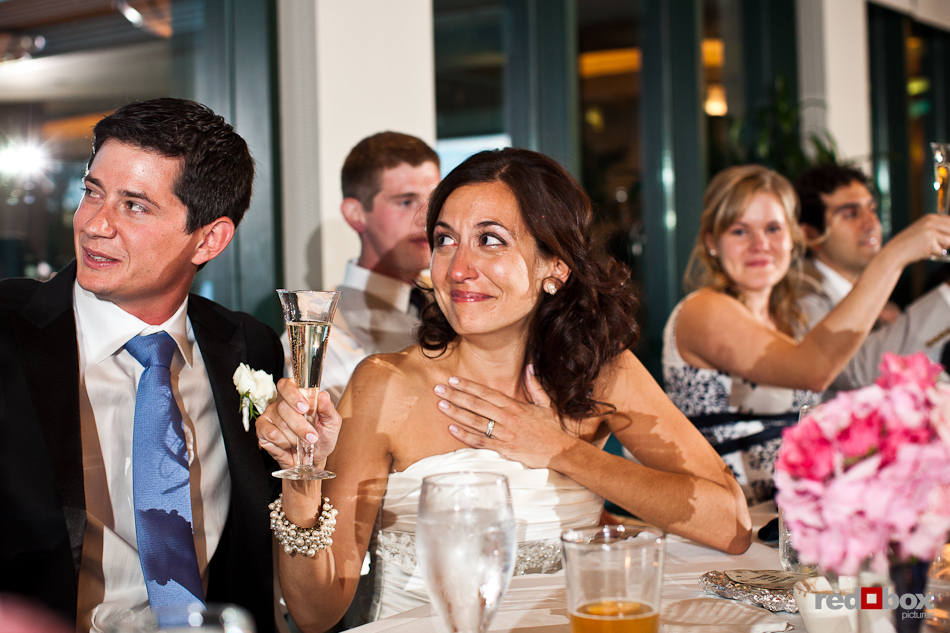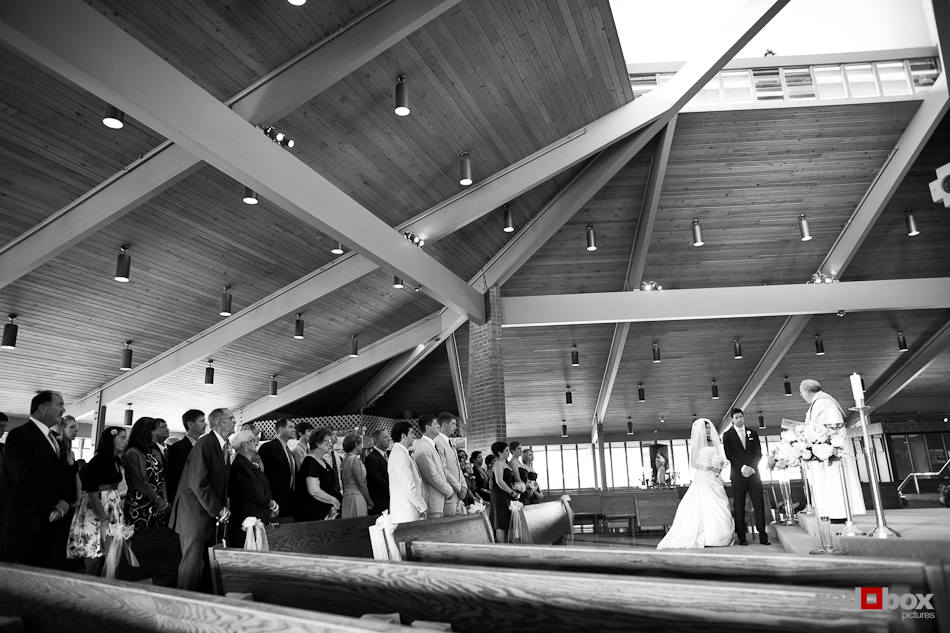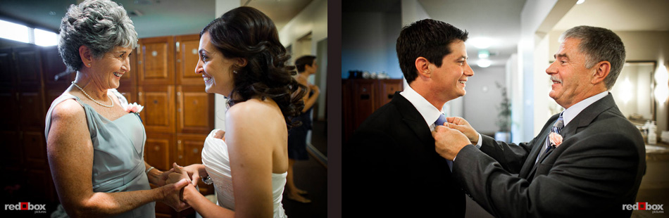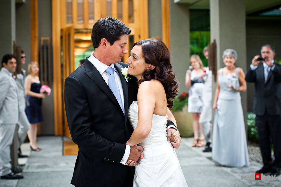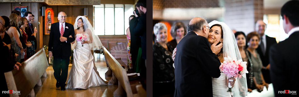 Nadine and Brian’s wedding day began beautifully, proceeded to heartwarming and ended in joyous celebration. After they got ready at The Plateau Club in Sammamish,WA, Nadine and Brian shared a sweet moment when they saw each other for the first time in their wedding outfits. Then they were off to St. Madeleine Sophie Catholic Church in Bellevue, where the octagonally-shaped sanctuary made a striking venue for their nuptials.