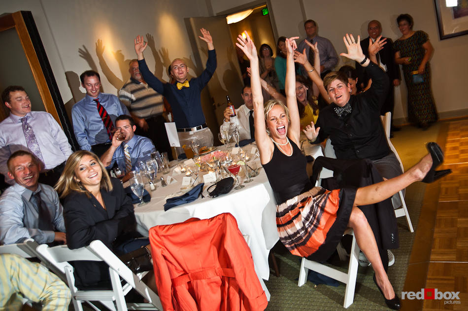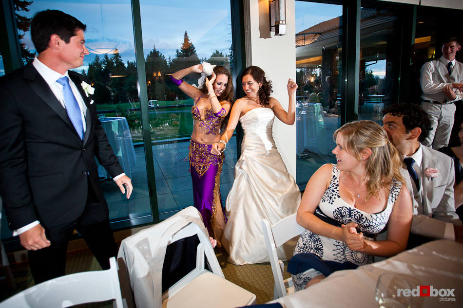 A limo then transported the couple back to the Plateau Club, where the party included cocktails on the patio, a festive dinner and memorable toasts. Then, Brian’s surprise appeared: A belly dancer who soon had the bride, groom, groomsmen, parents and guests dancing to seductive Middle Eastern music. The floor then opened to the Dueling Pianos of Jeff & Rhiannon, a super fun, all-request act that had everyone singing and dancing. There were so many highlights, but my favorite was all the guys serenading Nadine while she atop a piano. And that Elvis dance-off was a hoot too. Nadine and Brian, thanks for letting me photograph your wedding; I smiled the whole drive home. | Dan DeLong