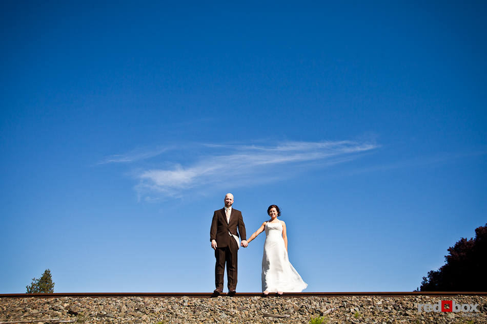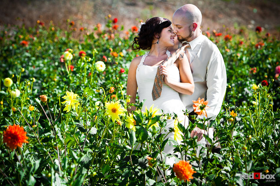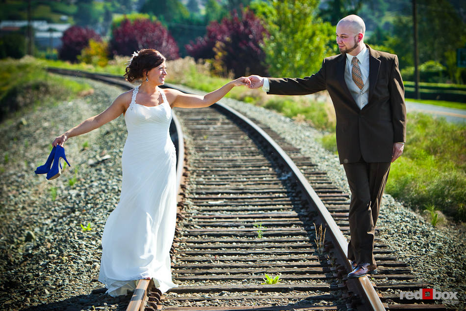 Liz and Ted were married at Hidden Meadows, a former dairy farm that’s been converted into a spectacular wedding venue near Snohomish, WA. After photographing the couple getting ready, we visited a nearby dahlia garden and railroad line for some fun portraits. The bucolic setting provided a great environment to capture the couple’s chemistry and warmth.