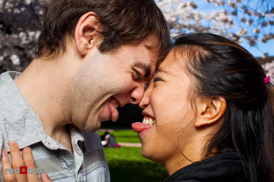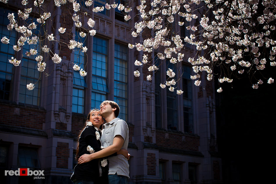 After weeks of dreariness and multiple session reschedules, Emily and Mark hit the jackpot with the most gorgeous day we’ve seen in forever. I think every student at the University of Washington was on the Quad with us taking in the beauty of the cherry trees in full bloom. Emily and Mark made the most of their opportunity, and we got some playful, sweet engagement photos. Enjoy!
